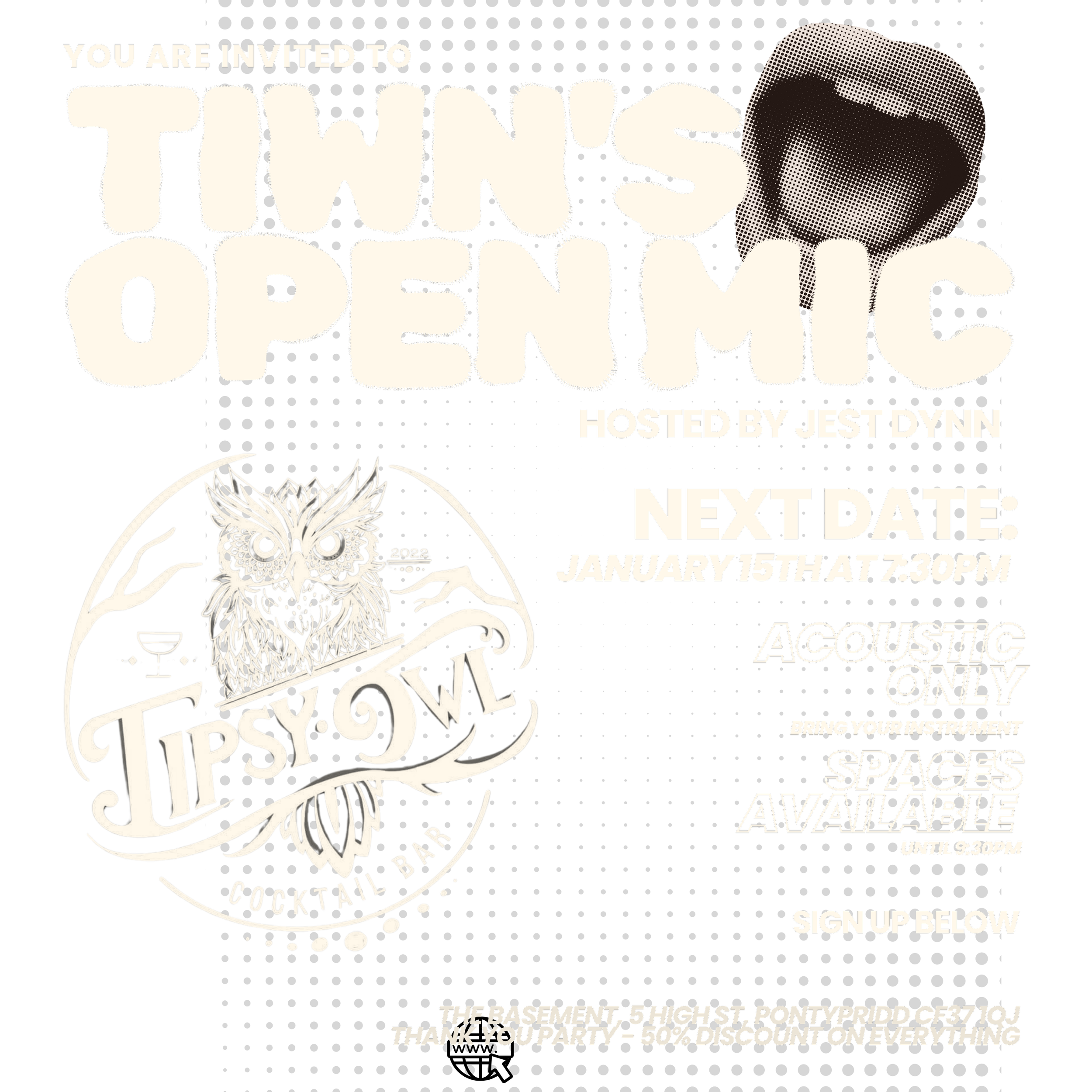 We are excited to be teaming up with Tipsy Owl to bring an exciting new open mic to Pontypridd. With a cosy events space, and a top-quality PA system, artists will be able to showcase their talents with ease and style. Hosted Jest Dynn, you will be in safe hands. Whether you want to perform a cover song and get a future gig at Tipsy Owl or whether you want to try out a brand new original song then this is the space for you. Each artist can perform between 1-3 songs, which an opportunity to play more if there is time. This event will be acoustic only, however, we plan on putting forward a rap/upbeat night every 4-6 weeks. We recommend bringing your guitars but if you are stuck please let us know and one can be provided by our host. A space can be given by filling out the form below.